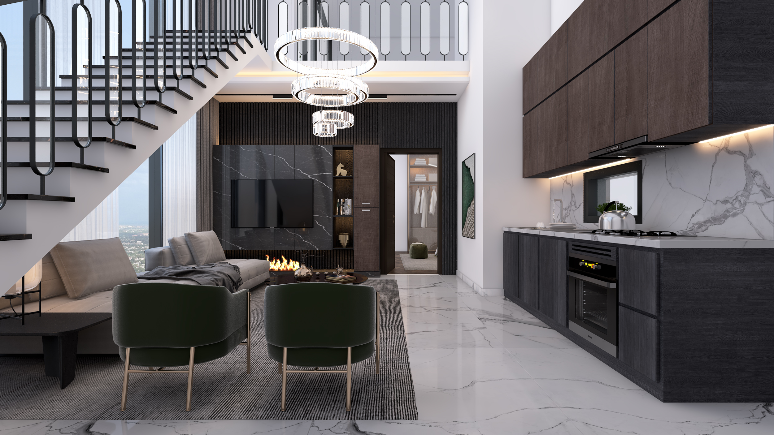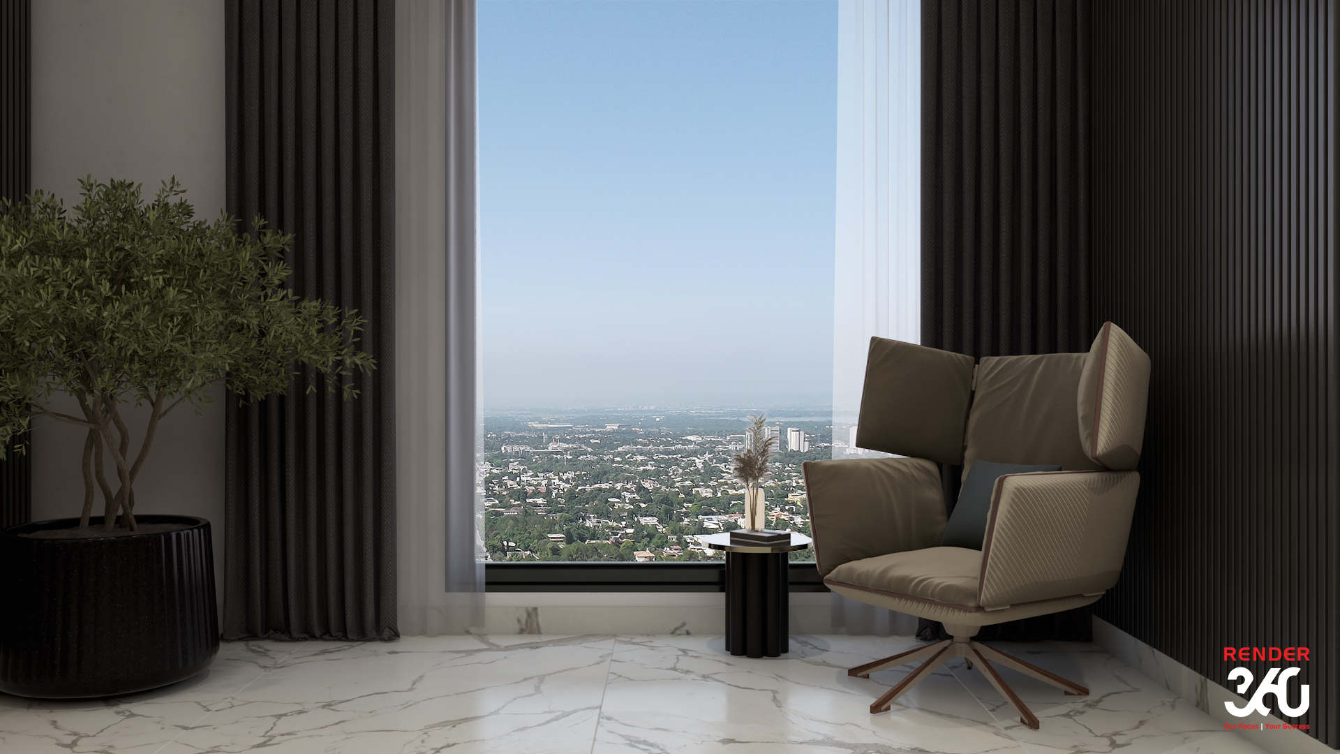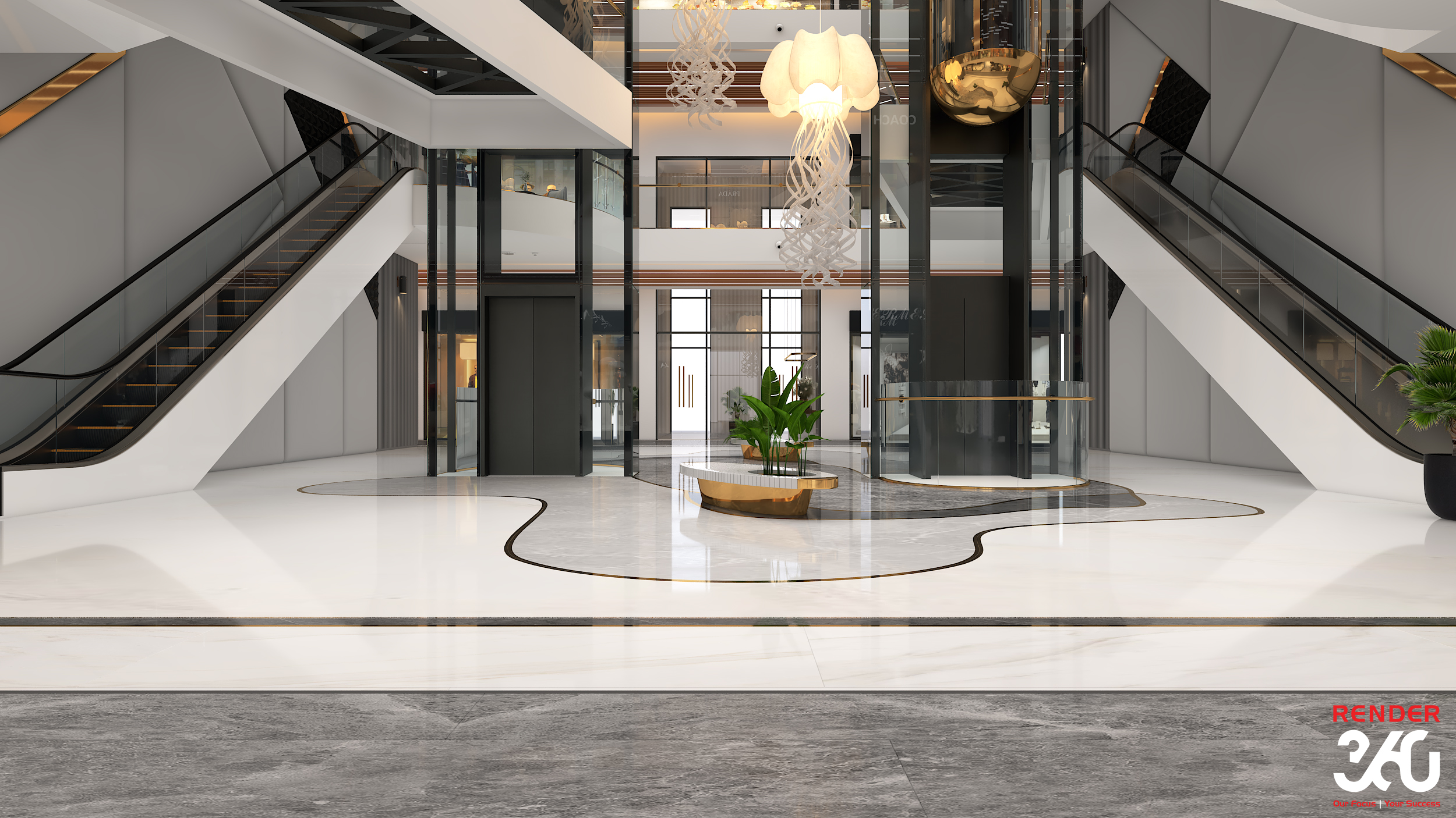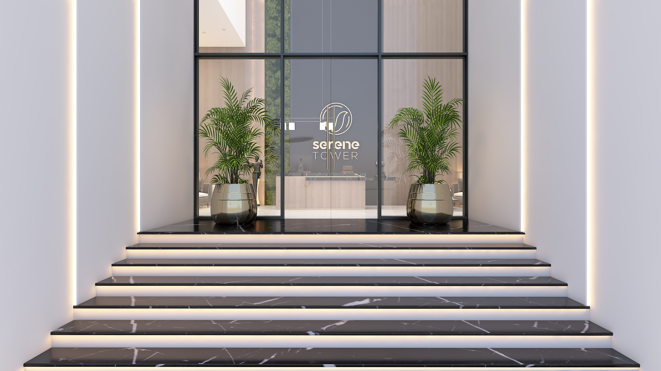 The VR Tour of Serene Tower offers an immersive experience that allows viewers to explore the project as if they were physically walking through it. From the moment the tour begins, visitors are welcomed into a grand, double-height lobby featuring elegant marble finishes, warm lighting, and a sophisticated ambiance that sets the tone for the entire development. As the tour continues, it smoothly transitions through the commercial floors, where modern retail shops and open spaces highlight Serene Tower’s focus on premium design and accessibility.